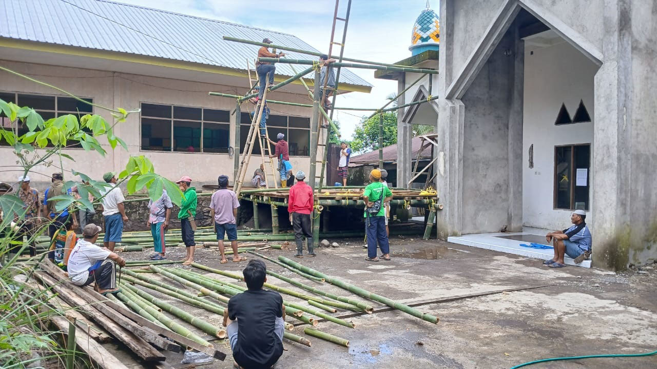 Acara berlangsung dengan penuh kebersamaan dan semangat gotong royong, mencerminkan kuatnya nilai-nilai kebersamaan dalam membangun sarana ibadah yang berkah bagi umat.